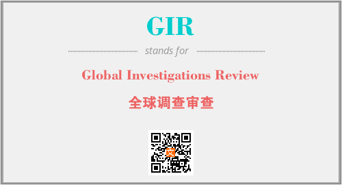 上述内容是“Global Investigations Review”作为“GIR”的缩写,解释为“全球调查审查”时的信息,以及英文缩略词GIR所代表的英文单词,其对应的中文拼音、详细解释以及在英文中的流行度和相关分类、应用领域及应用示例等。
