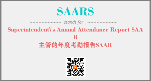 上述内容是“Superintendent\'s Annual Attendance Report SAAR”作为“SAARS”的缩写,解释为“主管的年度考勤报告SAAR”时的信息,以及英文缩略词SAARS所代表的英文单词,其对应的中文拼音、详细解释以及在英文中的流行度和相关分类、应用领域及应用示例等。