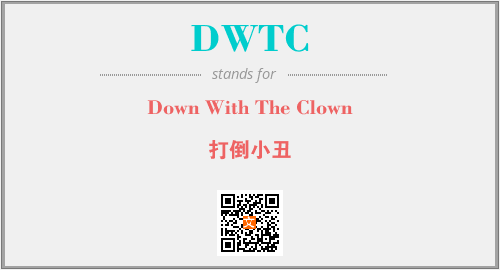 英文缩略词“DWTC”经常作为“Down With The Clown”的英文缩写来使用,中文表示:“打倒小丑”。本文将详细介绍英文缩写词DWTC所代表英文单词,其对应的中文拼音、详细解释以及在英语中的流行度。此外,还有关于缩略词DWTC的分类、应用领域及相关应用示例等。