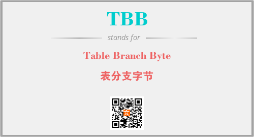 英文缩略词“TBB”经常作为“Table Branch Byte”的英文缩写来使用,中文表示:“表分支字节”。本文将详细介绍英文缩写词TBB所代表英文单词,其对应的中文拼音、详细解释以及在英语中的流行度。此外,还有关于缩略词TBB的分类、应用领域及相关应用示例等。
