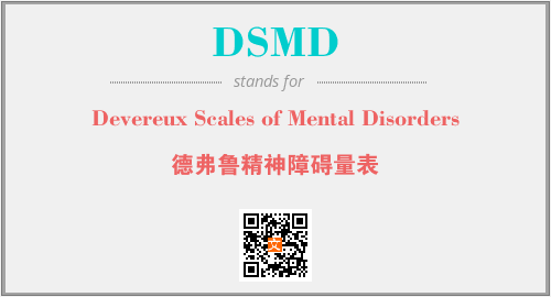 以上为Devereux Scales of Mental Disorders英文缩略词DSMD的中文解释,以及该英文缩写在英语的流行度、分类和应用领域方面的信息。