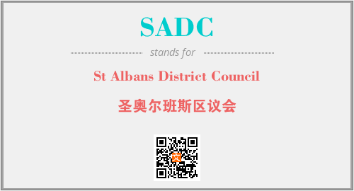 上述内容是“St Albans District Council”作为“SADC”的缩写,解释为“圣奥尔班斯区议会”时的信息,以及英文缩略词SADC所代表的英文单词,其对应的中文拼音、详细解释以及在英文中的流行度和相关分类、应用领域及应用示例等。