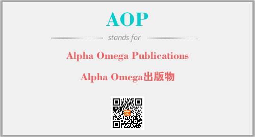 上述内容是“Alpha Omega Publications”作为“AOP”的缩写,解释为“Alpha Omega出版物”时的信息,以及英文缩略词AOP所代表的英文单词,其对应的中文拼音、详细解释以及在英文中的流行度和相关分类、应用领域及应用示例等。
