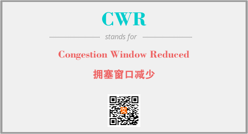 上述内容是“Congestion Window Reduced”作为“CWR”的缩写,解释为“拥塞窗口减少”时的信息,以及英文缩略词CWR所代表的英文单词,其对应的中文拼音、详细解释以及在英文中的流行度和相关分类、应用领域及应用示例等。