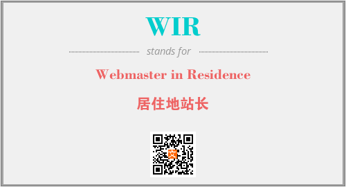 英文缩略词“WIR”经常作为“Webmaster in Residence”的英文缩写来使用,中文表示:“居住地站长”。本文将详细介绍英文缩写词WIR所代表英文单词,其对应的中文拼音、详细解释以及在英语中的流行度。此外,还有关于缩略词WIR的分类、应用领域及相关应用示例等。