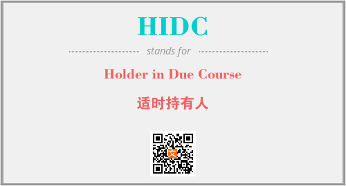 英文缩略词“HIDC”经常作为“Holder in Due Course”的英文缩写来使用,中文表示:“适时持有人”。本文将详细介绍英文缩写词HIDC所代表英文单词,其对应的中文拼音、详细解释以及在英语中的流行度。此外,还有关于缩略词HIDC的分类、应用领域及相关应用示例等。