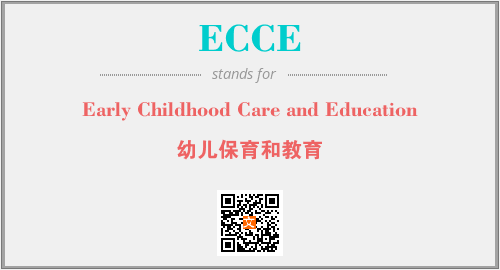 英文缩略词“ECCE”经常作为“Early Childhood Care and Education”的英文缩写来使用,中文表示:“幼儿保育和教育”。本文将详细介绍英文缩写词ECCE所代表英文单词,其对应的中文拼音、详细解释以及在英语中的流行度。此外,还有关于缩略词ECCE的分类、应用领域及相关应用示例等。