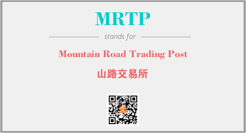 英文缩略词“MRTP”经常作为“Mountain Road Trading Post”的英文缩写来使用,中文表示:“山路交易所”。本文将详细介绍英文缩写词MRTP所代表英文单词,其对应的中文拼音、详细解释以及在英语中的流行度。此外,还有关于缩略词MRTP的分类、应用领域及相关应用示例等。