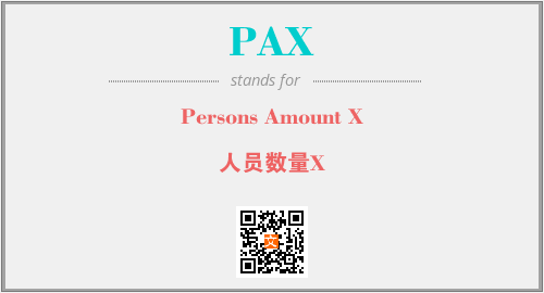 英文缩略词“PAX”经常作为“Persons Amount X”的英文缩写来使用,中文表示:“人员数量X”。本文将详细介绍英文缩写词PAX所代表英文单词,其对应的中文拼音、详细解释以及在英语中的流行度。此外,还有关于缩略词PAX的分类、应用领域及相关应用示例等。