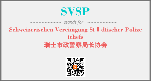 以上为Schweizerischen Vereinigung Städtischer Polizeichefs英文缩略词SVSP的中文解释,以及该英文缩写在英语的流行度、分类和应用领域方面的信息。