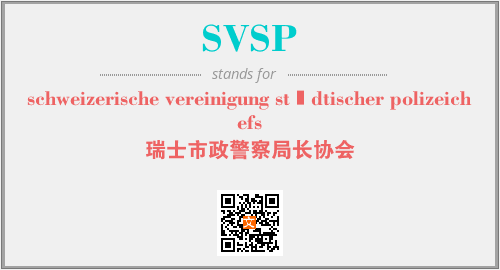 英文缩略词“SVSP”经常作为“schweizerische vereinigung städtischer polizeichefs”的英文缩写来使用,中文表示:“瑞士市政警察局长协会”。本文将详细介绍英文缩写词SVSP所代表英文单词,其对应的中文拼音、详细解释以及在英语中的流行度。此外,还有关于缩略词SVSP的分类、应用领域及相关应用示例等。