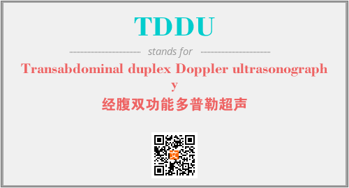上述内容是“Transabdominal duplex Doppler ultrasonography”作为“TDDU”的缩写,解释为“经腹双功能多普勒超声”时的信息,以及英文缩略词TDDU所代表的英文单词,其对应的中文拼音、详细解释以及在英文中的流行度和相关分类、应用领域及应用示例等。