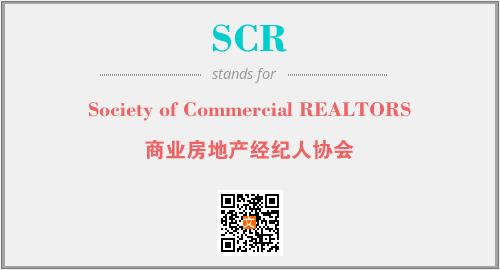 上述内容是“Society of Commercial REALTORS”作为“SCR”的缩写,解释为“商业房地产经纪人协会”时的信息,以及英文缩略词SCR所代表的英文单词,其对应的中文拼音、详细解释以及在英文中的流行度和相关分类、应用领域及应用示例等。