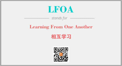 上述内容是“Learning From One Another”作为“LFOA”的缩写,解释为“相互学习”时的信息,以及英文缩略词LFOA所代表的英文单词,其对应的中文拼音、详细解释以及在英文中的流行度和相关分类、应用领域及应用示例等。