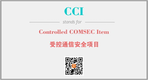 英文缩略词“CCI”经常作为“Controlled COMSEC Item”的英文缩写来使用,中文表示:“受控通信安全项目”。本文将详细介绍英文缩写词CCI所代表英文单词,其对应的中文拼音、详细解释以及在英语中的流行度。此外,还有关于缩略词CCI的分类、应用领域及相关应用示例等。