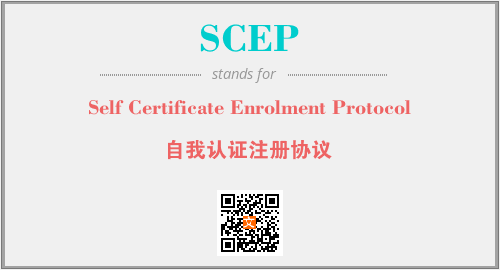 英文缩略词“SCEP”经常作为“Self Certificate Enrolment Protocol”的英文缩写来使用,中文表示:“自我认证注册协议”。本文将详细介绍英文缩写词SCEP所代表英文单词,其对应的中文拼音、详细解释以及在英语中的流行度。此外,还有关于缩略词SCEP的分类、应用领域及相关应用示例等。