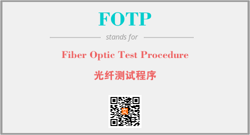 英文缩略词“FOTP”经常作为“Fiber Optic Test Procedure”的英文缩写来使用,中文表示:“光纤测试程序”。本文将详细介绍英文缩写词FOTP所代表英文单词,其对应的中文拼音、详细解释以及在英语中的流行度。此外,还有关于缩略词FOTP的分类、应用领域及相关应用示例等。