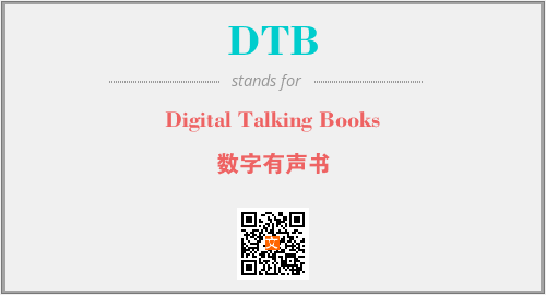 以上为Digital Talking Books英文缩略词DTB的中文解释,以及该英文缩写在英语的流行度、分类和应用领域方面的信息。
