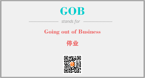 英文缩略词“GOB”经常作为“Going out of Business”的英文缩写来使用,中文表示:“停业”。本文将详细介绍英文缩写词GOB所代表英文单词,其对应的中文拼音、详细解释以及在英语中的流行度。此外,还有关于缩略词GOB的分类、应用领域及相关应用示例等。