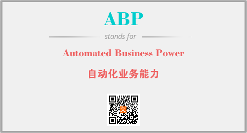 上述内容是“Automated Business Power”作为“ABP”的缩写,解释为“自动化业务能力”时的信息,以及英文缩略词ABP所代表的英文单词,其对应的中文拼音、详细解释以及在英文中的流行度和相关分类、应用领域及应用示例等。