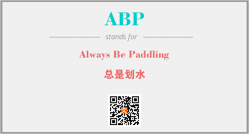 英文缩略词“ABP”经常作为“Always Be Paddling”的英文缩写来使用,中文表示:“总是划水”。本文将详细介绍英文缩写词ABP所代表英文单词,其对应的中文拼音、详细解释以及在英语中的流行度。此外,还有关于缩略词ABP的分类、应用领域及相关应用示例等。