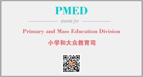 上述内容是“Primary and Mass Education Division”作为“PMED”的缩写,解释为“小学和大众教育司”时的信息,以及英文缩略词PMED所代表的英文单词,其对应的中文拼音、详细解释以及在英文中的流行度和相关分类、应用领域及应用示例等。