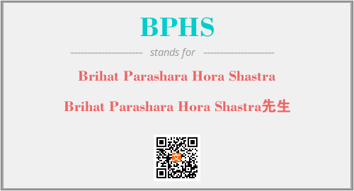英文缩略词“BPHS”经常作为“Brihat Parashara Hora Shastra”的英文缩写来使用,中文表示:“Brihat Parashara Hora Shastra先生”。本文将详细介绍英文缩写词BPHS所代表英文单词,其对应的中文拼音、详细解释以及在英语中的流行度。此外,还有关于缩略词BPHS的分类、应用领域及相关应用示例等。