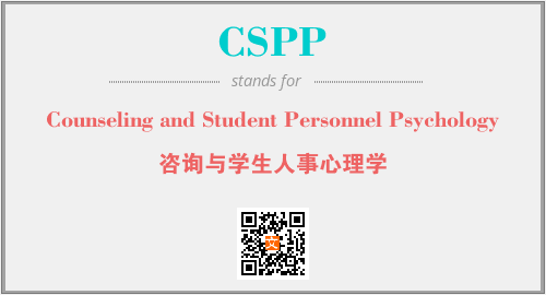 英文缩略词“CSPP”经常作为“Counseling and Student Personnel Psychology”的英文缩写来使用,中文表示:“咨询与学生人事心理学”。本文将详细介绍英文缩写词CSPP所代表英文单词,其对应的中文拼音、详细解释以及在英语中的流行度。此外,还有关于缩略词CSPP的分类、应用领域及相关应用示例等。