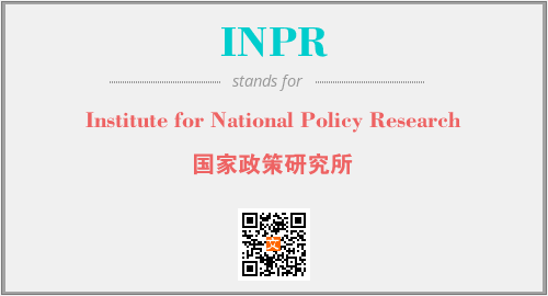 上述内容是“Institute for National Policy Research”作为“INPR”的缩写,解释为“国家政策研究所”时的信息,以及英文缩略词INPR所代表的英文单词,其对应的中文拼音、详细解释以及在英文中的流行度和相关分类、应用领域及应用示例等。