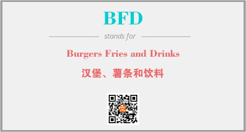 上述内容是“Burgers Fries and Drinks”作为“BFD”的缩写,解释为“汉堡、薯条和饮料”时的信息,以及英文缩略词BFD所代表的英文单词,其对应的中文拼音、详细解释以及在英文中的流行度和相关分类、应用领域及应用示例等。