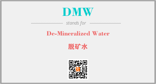 英文缩略词“DMW”经常作为“De-Mineralized Water”的英文缩写来使用,中文表示:“脱矿水”。本文将详细介绍英文缩写词DMW所代表英文单词,其对应的中文拼音、详细解释以及在英语中的流行度。此外,还有关于缩略词DMW的分类、应用领域及相关应用示例等。