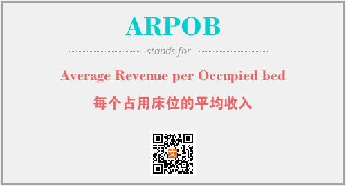 上述内容是“Average Revenue per Occupied bed”作为“ARPOB”的缩写,解释为“每个占用床位的平均收入”时的信息,以及英文缩略词ARPOB所代表的英文单词,其对应的中文拼音、详细解释以及在英文中的流行度和相关分类、应用领域及应用示例等。