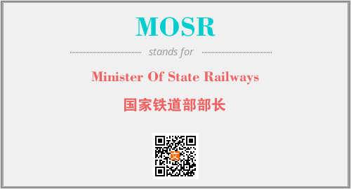 上述内容是“Minister Of State Railways”作为“MOSR”的缩写,解释为“国家铁道部部长”时的信息,以及英文缩略词MOSR所代表的英文单词,其对应的中文拼音、详细解释以及在英文中的流行度和相关分类、应用领域及应用示例等。