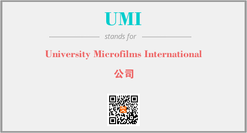 英文缩略词“UMI”经常作为“University Microfilms International”的英文缩写来使用,中文表示:“公司”。本文将详细介绍英文缩写词UMI所代表英文单词,其对应的中文拼音、详细解释以及在英语中的流行度。此外,还有关于缩略词UMI的分类、应用领域及相关应用示例等。