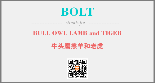 英文缩略词“BOLT”经常作为“BULL OWL LAMB and TIGER”的英文缩写来使用,中文表示:“牛头鹰羔羊和老虎”。本文将详细介绍英文缩写词BOLT所代表英文单词,其对应的中文拼音、详细解释以及在英语中的流行度。此外,还有关于缩略词BOLT的分类、应用领域及相关应用示例等。