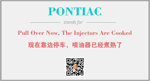 以上为Pull Over Now, The Injectors Are Cooked英文缩略词PONTIAC的中文解释,以及该英文缩写在英语的流行度、分类和应用领域方面的信息。