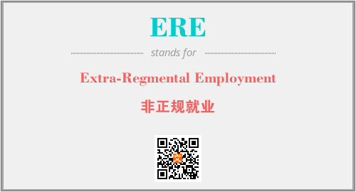 英文缩略词“ERE”经常作为“Extra-Regmental Employment”的英文缩写来使用,中文表示:“非正规就业”。本文将详细介绍英文缩写词ERE所代表英文单词,其对应的中文拼音、详细解释以及在英语中的流行度。此外,还有关于缩略词ERE的分类、应用领域及相关应用示例等。