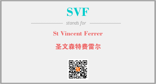 上述内容是“St Vincent Ferrer”作为“SVF”的缩写,解释为“圣文森特费雷尔”时的信息,以及英文缩略词SVF所代表的英文单词,其对应的中文拼音、详细解释以及在英文中的流行度和相关分类、应用领域及应用示例等。