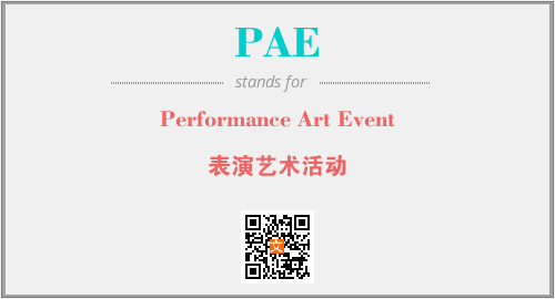 以上为Performance Art Event英文缩略词PAE的中文解释,以及该英文缩写在英语的流行度、分类和应用领域方面的信息。