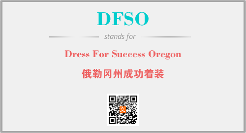 上述内容是“Dress For Success Oregon”作为“DFSO”的缩写,解释为“俄勒冈州成功着装”时的信息,以及英文缩略词DFSO所代表的英文单词,其对应的中文拼音、详细解释以及在英文中的流行度和相关分类、应用领域及应用示例等。