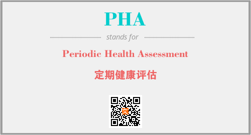 上述内容是“Periodic Health Assessment”作为“PHA”的缩写,解释为“定期健康评估”时的信息,以及英文缩略词PHA所代表的英文单词,其对应的中文拼音、详细解释以及在英文中的流行度和相关分类、应用领域及应用示例等。