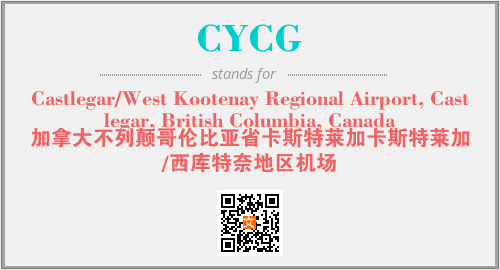 上述内容是“Castlegar/West Kootenay Regional Airport, Castlegar, British Columbia, Canada”作为“CYCG”的缩写,解释为“加拿大不列颠哥伦比亚省卡斯特莱加卡斯特莱加/西库特奈地区机场”时的信息,以及英文缩略词CYCG所代表的英文单词,其对应的中文拼音、详细解释以及在英文中的流行度和相关分类、应用领域及应用示例等。