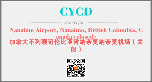 上述内容是“Nanaimo Airport, Nanaimo, British Columbia, Canada (closed)”作为“CYCD”的缩写,解释为“加拿大不列颠哥伦比亚省纳奈莫纳奈莫机场(关闭)”时的信息,以及英文缩略词CYCD所代表的英文单词,其对应的中文拼音、详细解释以及在英文中的流行度和相关分类、应用领域及应用示例等。
