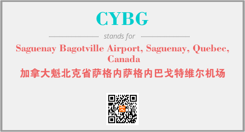 上述内容是“Saguenay Bagotville Airport, Saguenay, Quebec, Canada”作为“CYBG”的缩写,解释为“加拿大魁北克省萨格内萨格内巴戈特维尔机场”时的信息,以及英文缩略词CYBG所代表的英文单词,其对应的中文拼音、详细解释以及在英文中的流行度和相关分类、应用领域及应用示例等。