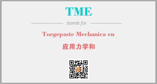 上述内容是“Toegepaste Mechanica en”作为“TME”的缩写,解释为“应用力学和”时的信息,以及英文缩略词TME所代表的英文单词,其对应的中文拼音、详细解释以及在英文中的流行度和相关分类、应用领域及应用示例等。