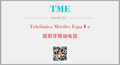 上述内容是“Telefónica Móviles España”作为“TME”的缩写,解释为“西班牙移动电话”时的信息,以及英文缩略词TME所代表的英文单词,其对应的中文拼音、详细解释以及在英文中的流行度和相关分类、应用领域及应用示例等。
