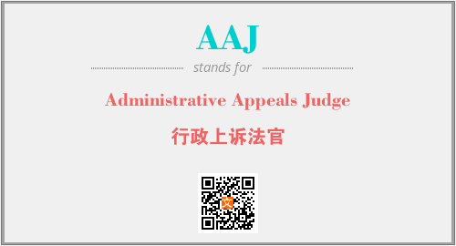 上述内容是“Administrative Appeals Judge”作为“AAJ”的缩写,解释为“行政上诉法官”时的信息,以及英文缩略词AAJ所代表的英文单词,其对应的中文拼音、详细解释以及在英文中的流行度和相关分类、应用领域及应用示例等。