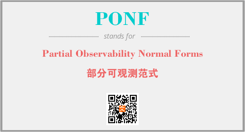 上述内容是“Partial Observability Normal Forms”作为“PONF”的缩写,解释为“部分可观测范式”时的信息,以及英文缩略词PONF所代表的英文单词,其对应的中文拼音、详细解释以及在英文中的流行度和相关分类、应用领域及应用示例等。