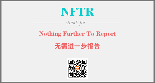 以上为Nothing Further To Report英文缩略词NFTR的中文解释,以及该英文缩写在英语的流行度、分类和应用领域方面的信息。
