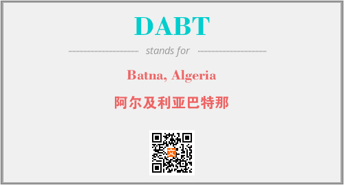 英文缩略词“DABT”经常作为“Batna, Algeria”的英文缩写来使用,中文表示:“阿尔及利亚巴特那”。本文将详细介绍英文缩写词DABT所代表英文单词,其对应的中文拼音、详细解释以及在英语中的流行度。此外,还有关于缩略词DABT的分类、应用领域及相关应用示例等。
